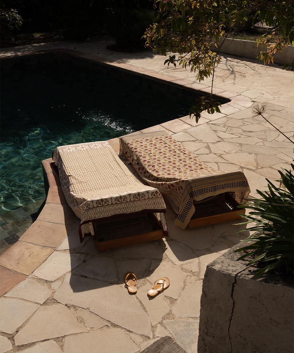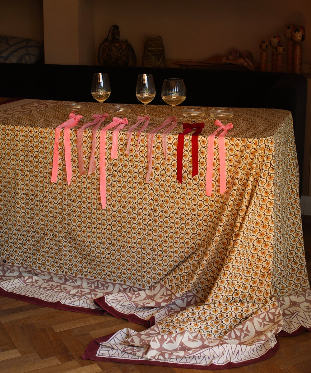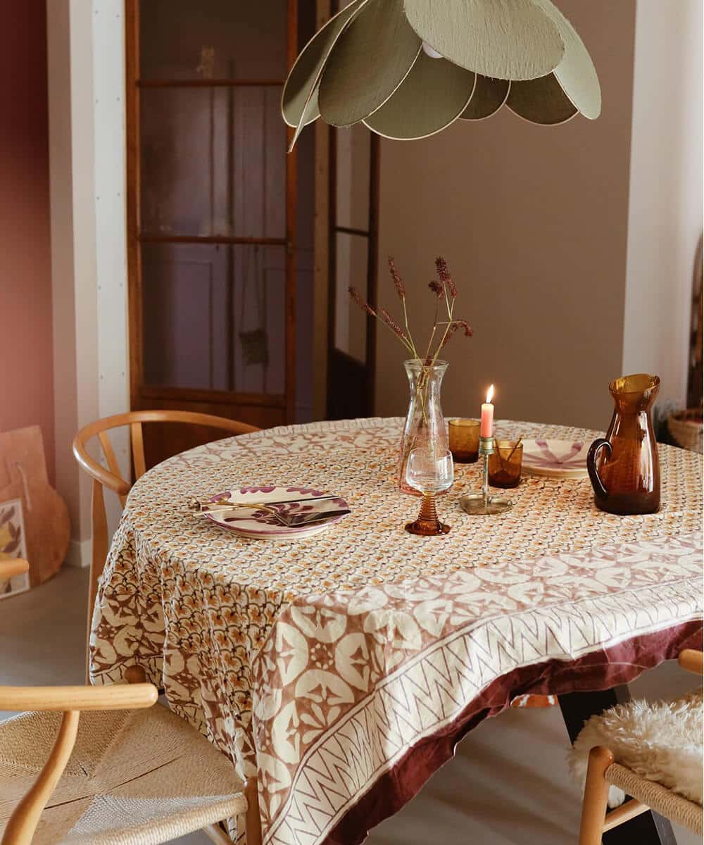 Nappe indienne Dani, impression à la main artisanale » block print », ce qui la rend unique! Les couleurs varient d’un modèle à l’autre.